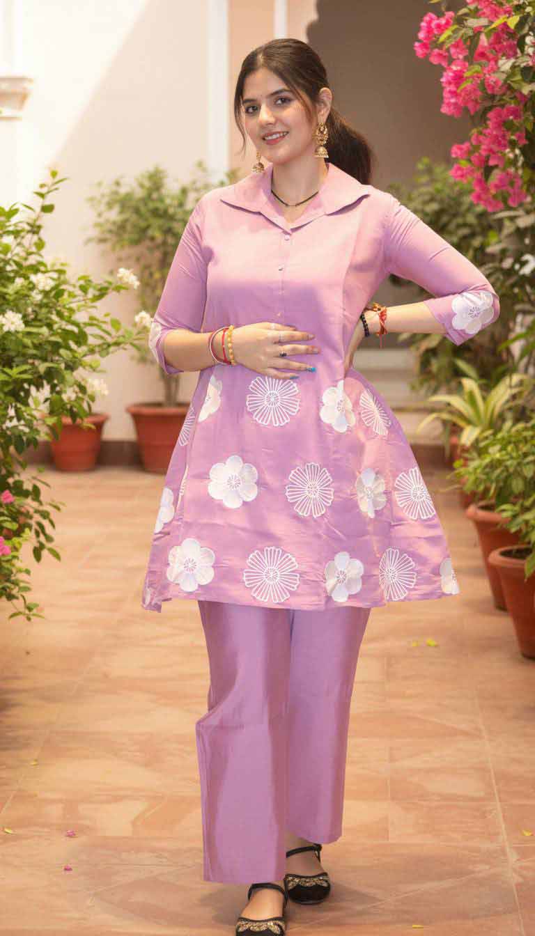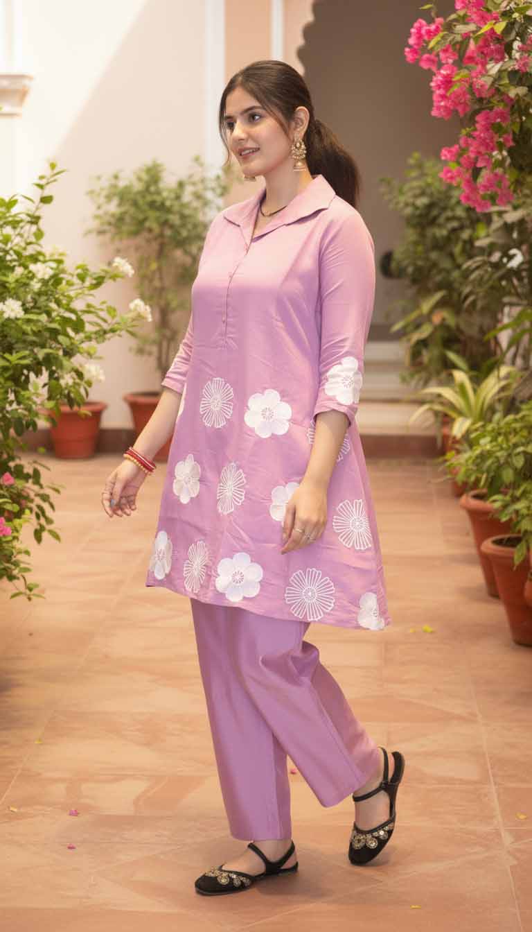 Embrace cheerful elegance with the Blush Petal Embroidered Co-ord Set from Sanrachna Co., a perfect fusion of comfort and charm. Crafted in a soft blush pink hue, this co-ord set radiates freshness and femininity with its minimal yet artistic floral embroidery — an ideal choice for casual gatherings, festive mornings, or everyday elegance.