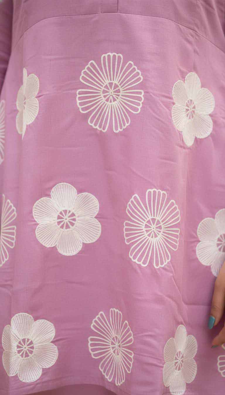 Hand wash or dry clean recommended. Avoid direct sunlight while drying to preserve the vibrancy of the blush hue and embroidery detailing.