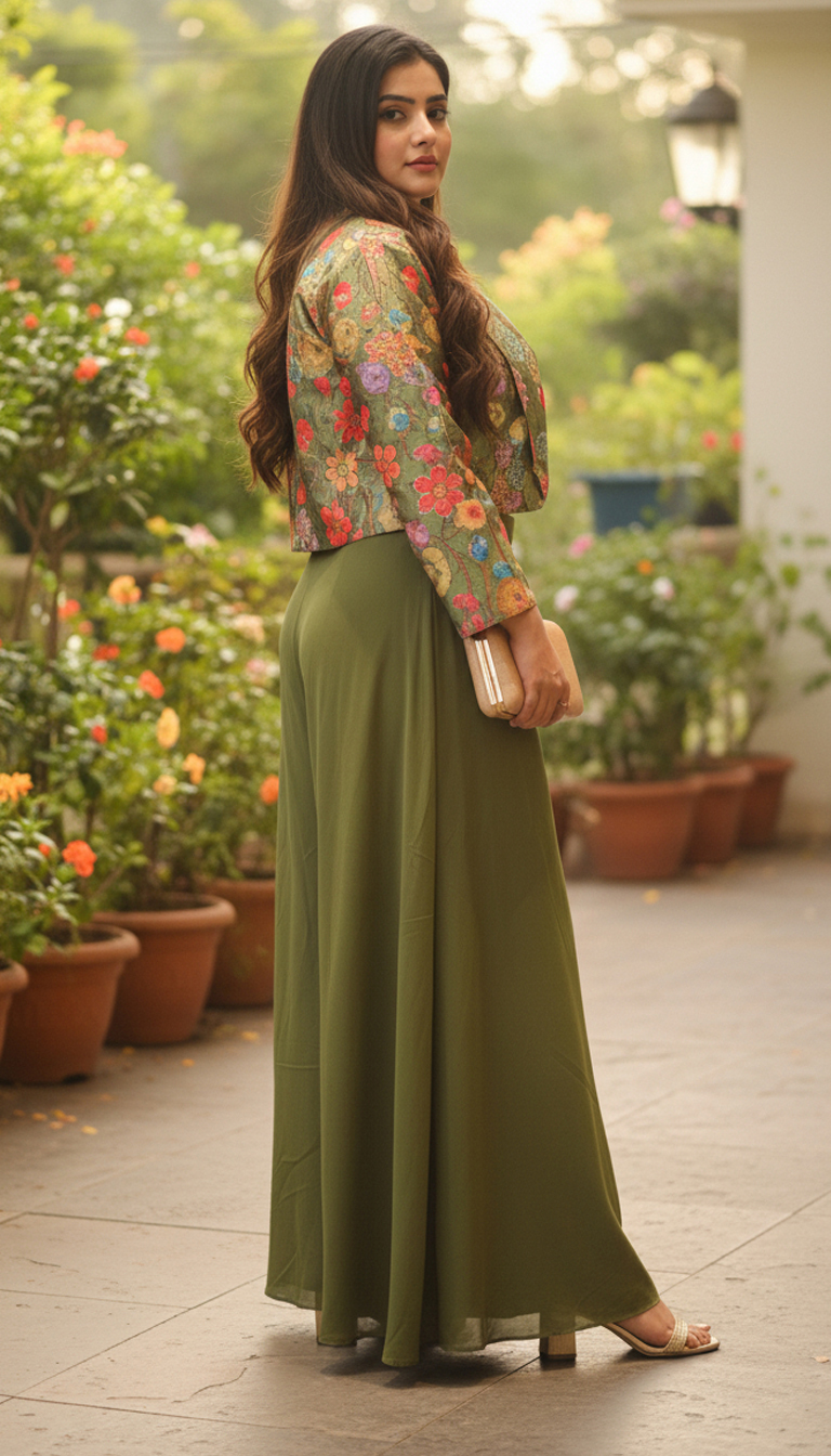 Ideal for cocktail evenings, festive gatherings, mehendi functions, or destination celebrations. The Olive Aura 3-Piece Set effortlessly transitions from traditional charm to modern glamour.